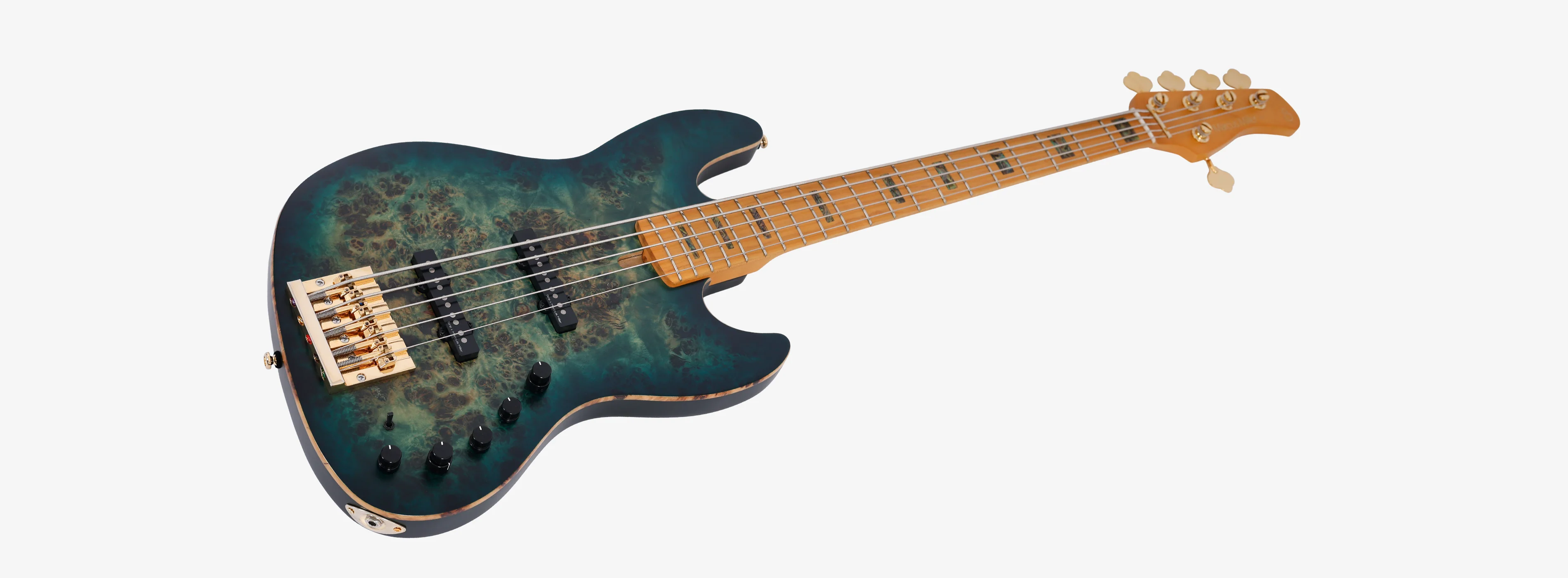 It is a new J bass body shape built using a Swamp Ash and a solid Poplar Burl wood producing more resonant and balanced tone with good sustain.